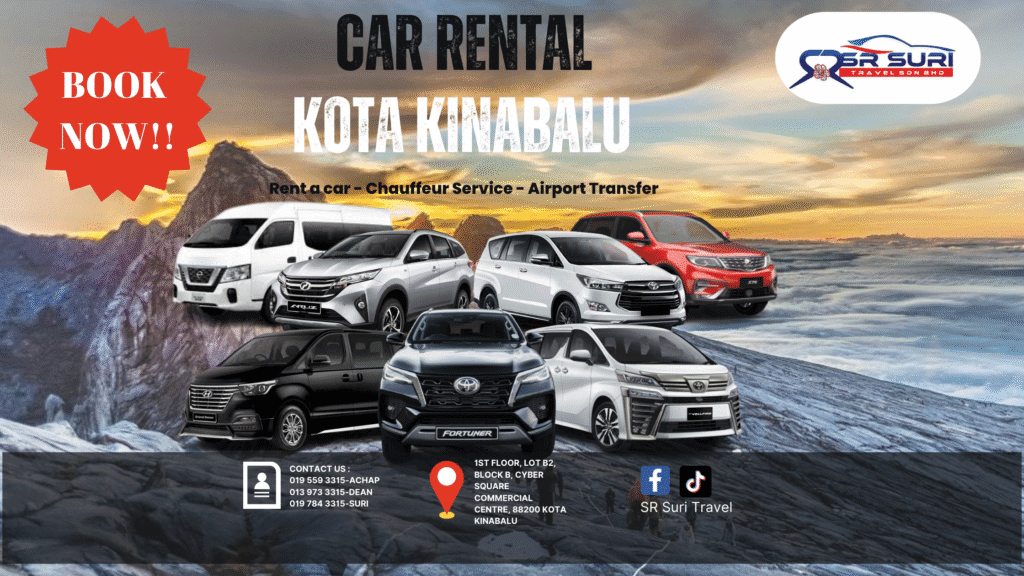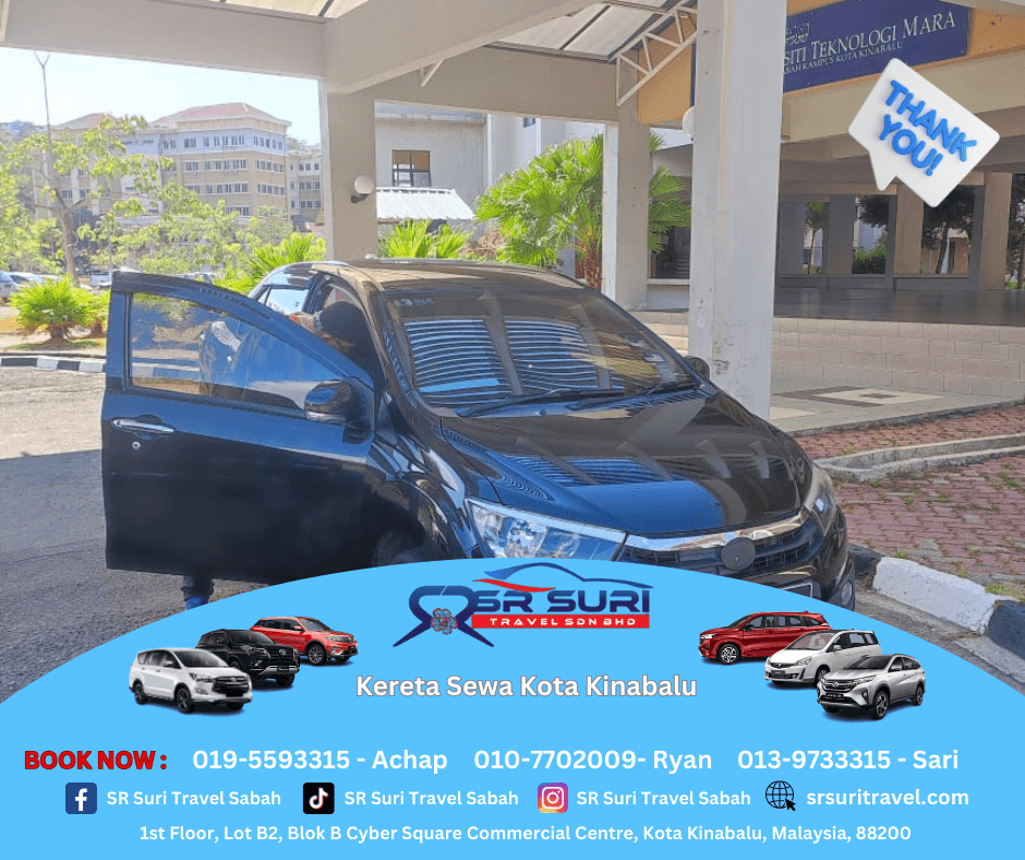 Kami menawarkan kadar sewa kereta kompetitif di Kota Kinabalu tanpa kompromi dalam kualiti perkhidmatan kami. Sama ada anda berada di Kota Kinabalu untuk perniagaan atau percutian, anda boleh menyewa kereta daripada SR Suri Travel Sdn. Bhd. untuk perkhidmatan yang boleh dipercayai dan berpatutan. Yakinlah bahawa pengalaman sewa kereta anda di Kota Kinabalu akan menjadi mudah dan selesa.